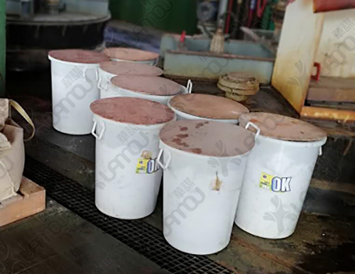 改善后換成廣口白色塑料桶,能防止酸堿物料腐蝕,用起來方便,而且美觀